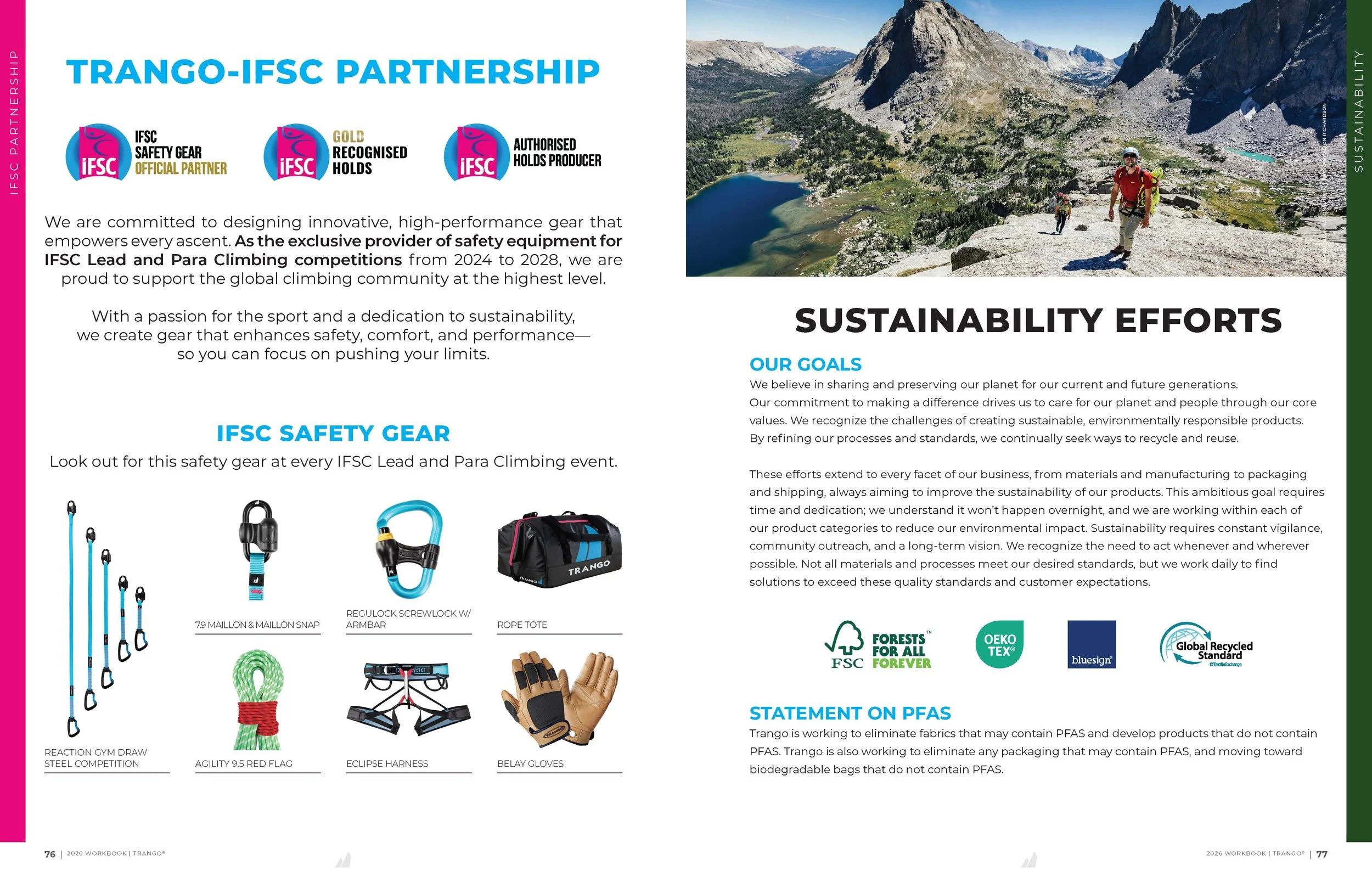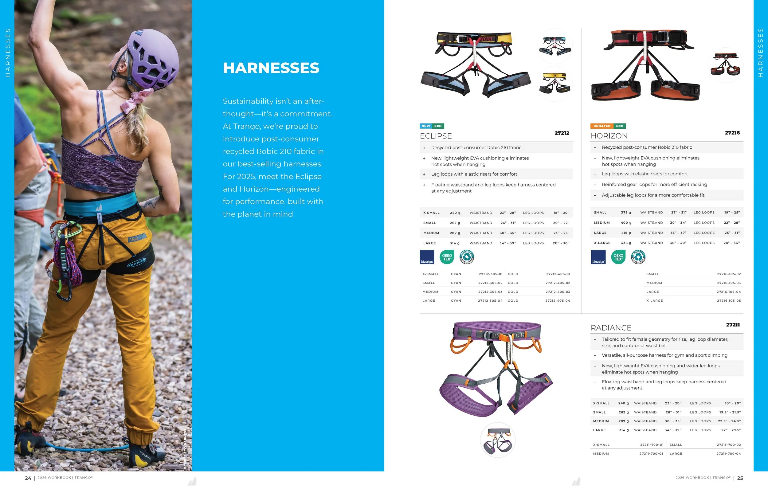 This is B2B sales workbook, produced entirely in-house by Trango, to feature the company’s entire gear catalogue for the coming sales year. This is one of the department’s largest projects, involving frequent coordination with the product team to complete copy and photography for all new products.